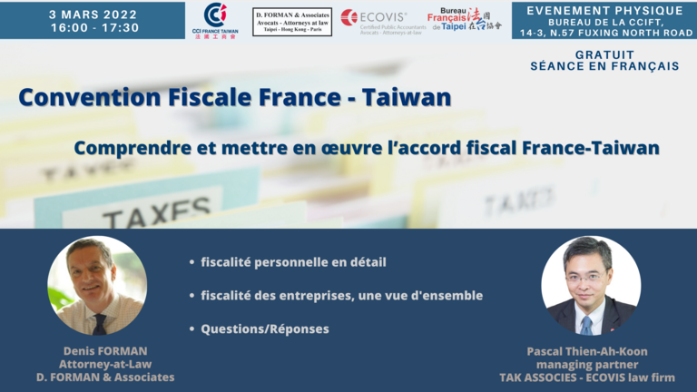 Due to many questions asked lately on various networks concerning the France-Taiwan Tax Convention, therefore, the BFT and the CCIFT have decided to…