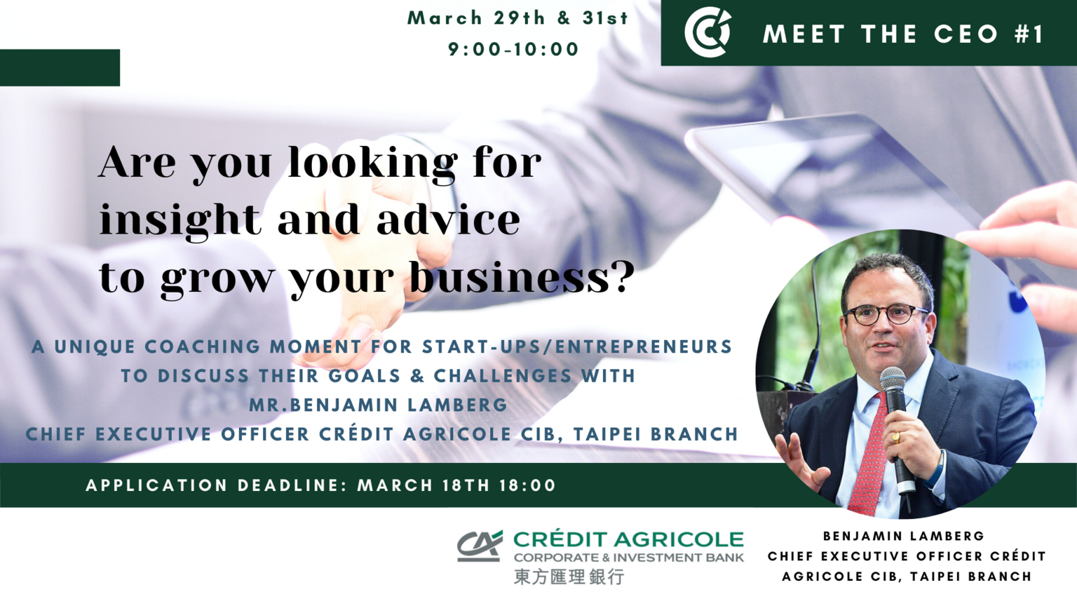 For our first Meet the CEO of 2022, Mr Benjamin Lamberg, Chief Executive Officer of Crédit Agricole CIB, Taipei Branch will be meeting two candidates!