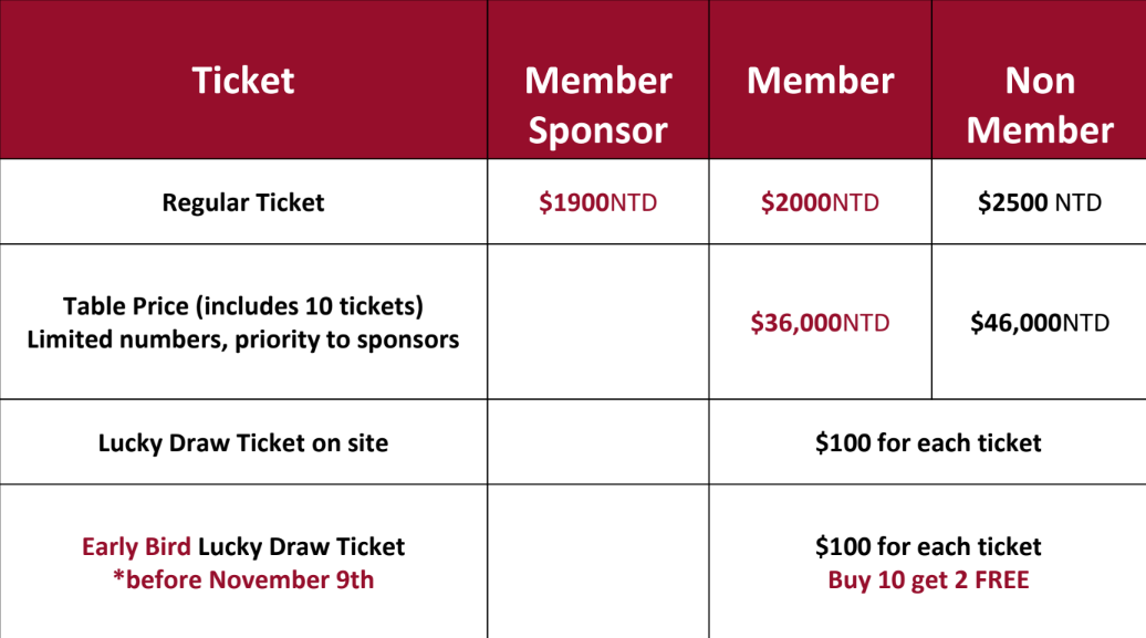 - Table Booking : Please contact pr@ccift.org.tw