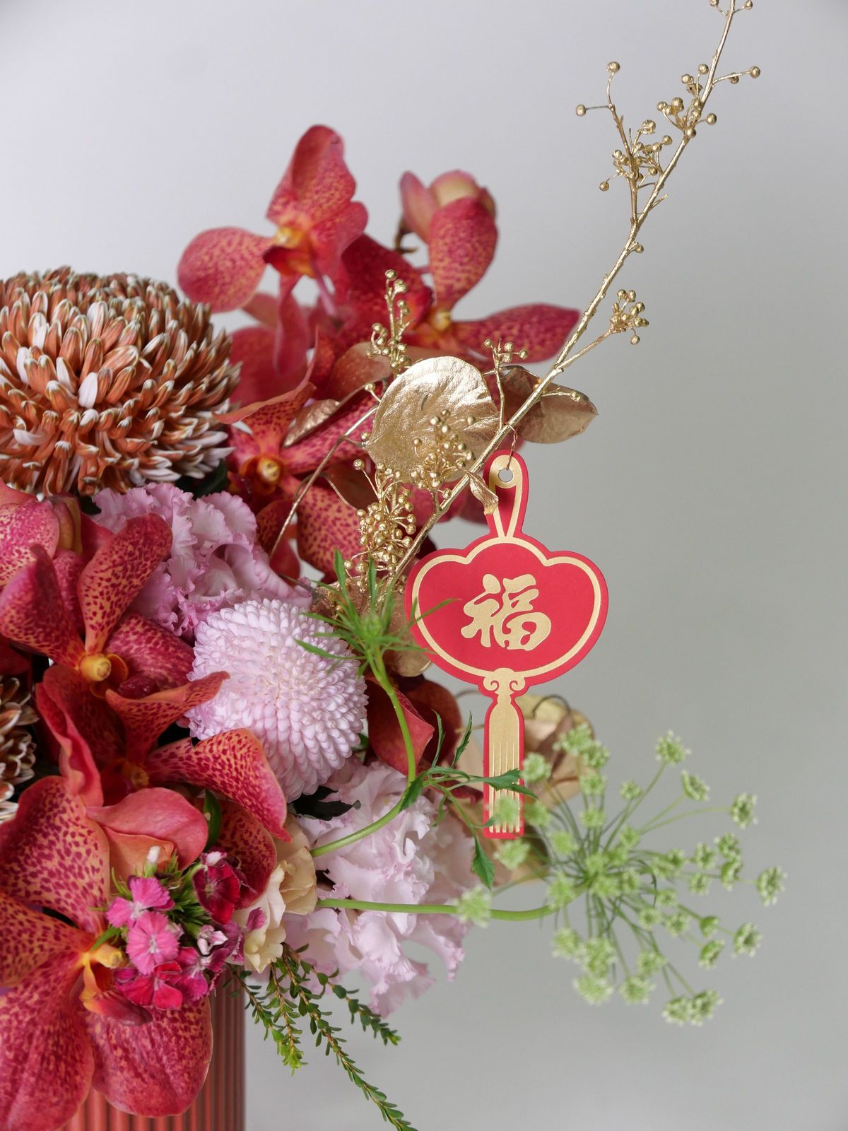 Whether you’re decorating your office space or your living quarters, this floral arrangement is great as a gift or on it’s own. Let's get festive for the Lunar New Year.