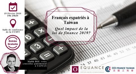 Equance vous propose cette conférence pour appréhender les incidences des évolutions prévues en 2019 sur la fiscalité des français résidant à Taïwan et vous présenter les stratégies d’investissements adaptées. Notre expert répondra à vos questions sur ces thématiques.
