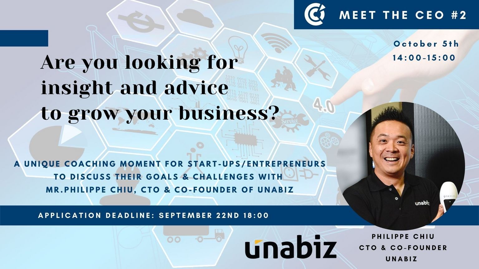 CCIFT relaunched its Meet the CEO program in 2021, our second CEO is Philippe Chiu, the CTO & Co-Founder of Unabiz! The meeting will take place on October 5th at 14:00.