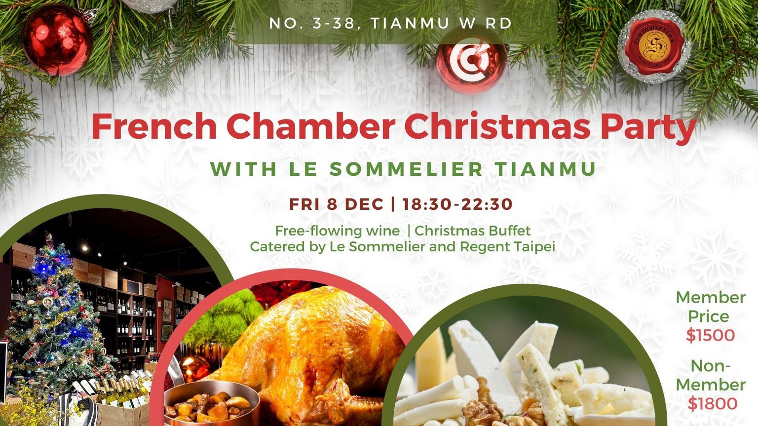 Free flow of wine, traditional sommelier buffet & Christmas turkey catered by Regent Taipei and Le Sommelier.