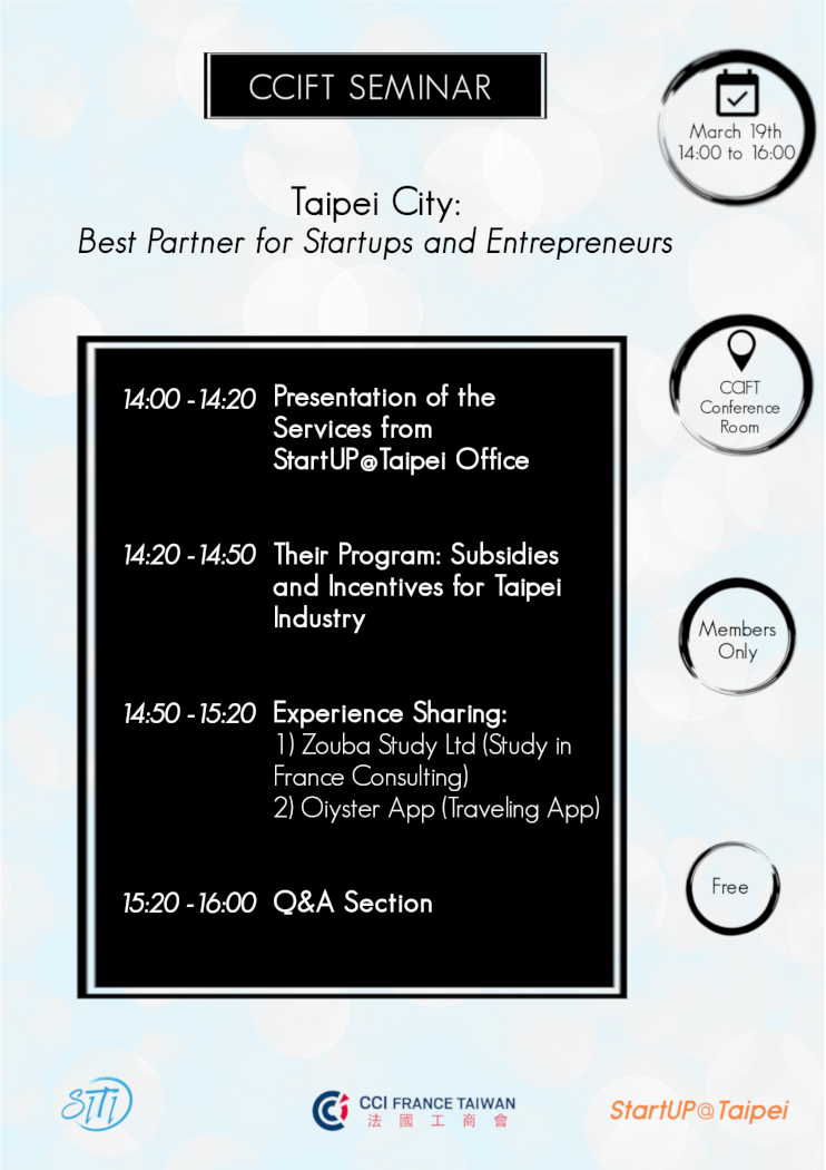 CCIFT Seminar - Taipei City: Best Partner for Startups and Entrepreneurs