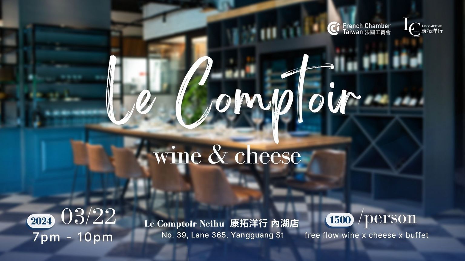 The French Chamber Taiwan invites all to a buffet at Le Comptoir's Neihu.