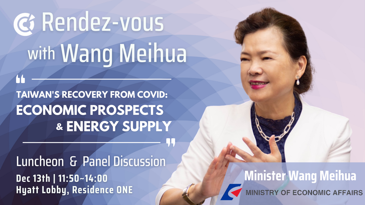 Following the success of our first Rendez-vous, we welcome Minister Wang Meihua from the Ministry of Economic Affairs to our upcoming luncheon.