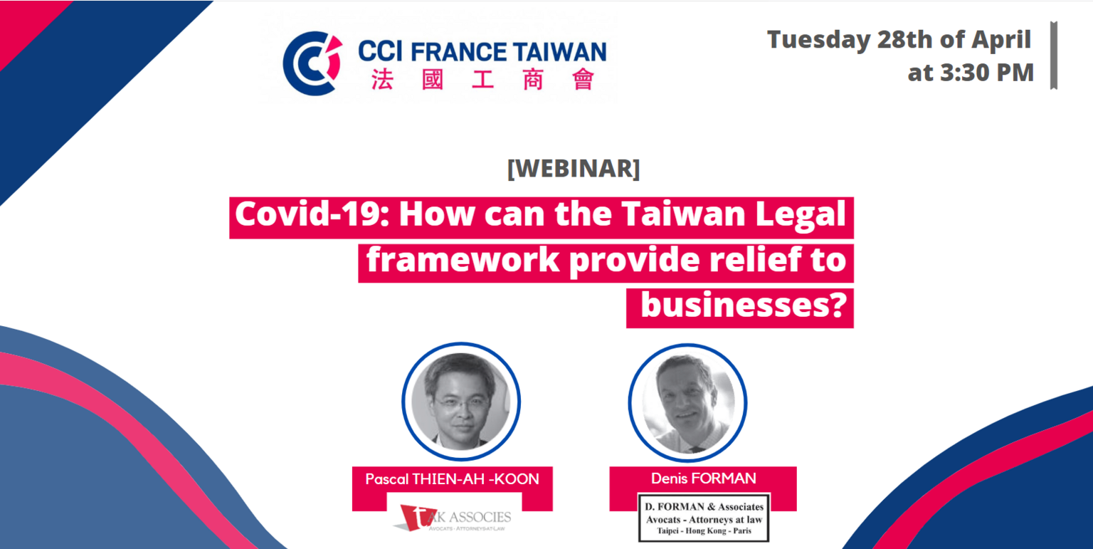 WEBINAR COVID 19 - How can the Taiwan legal framework provide relief to businesses? by TAK ASSOCIES Taiwan - ECOVIS & D.FORMAN & ASSOCIATES AVOCATS-ATTORNEYS AT LAW