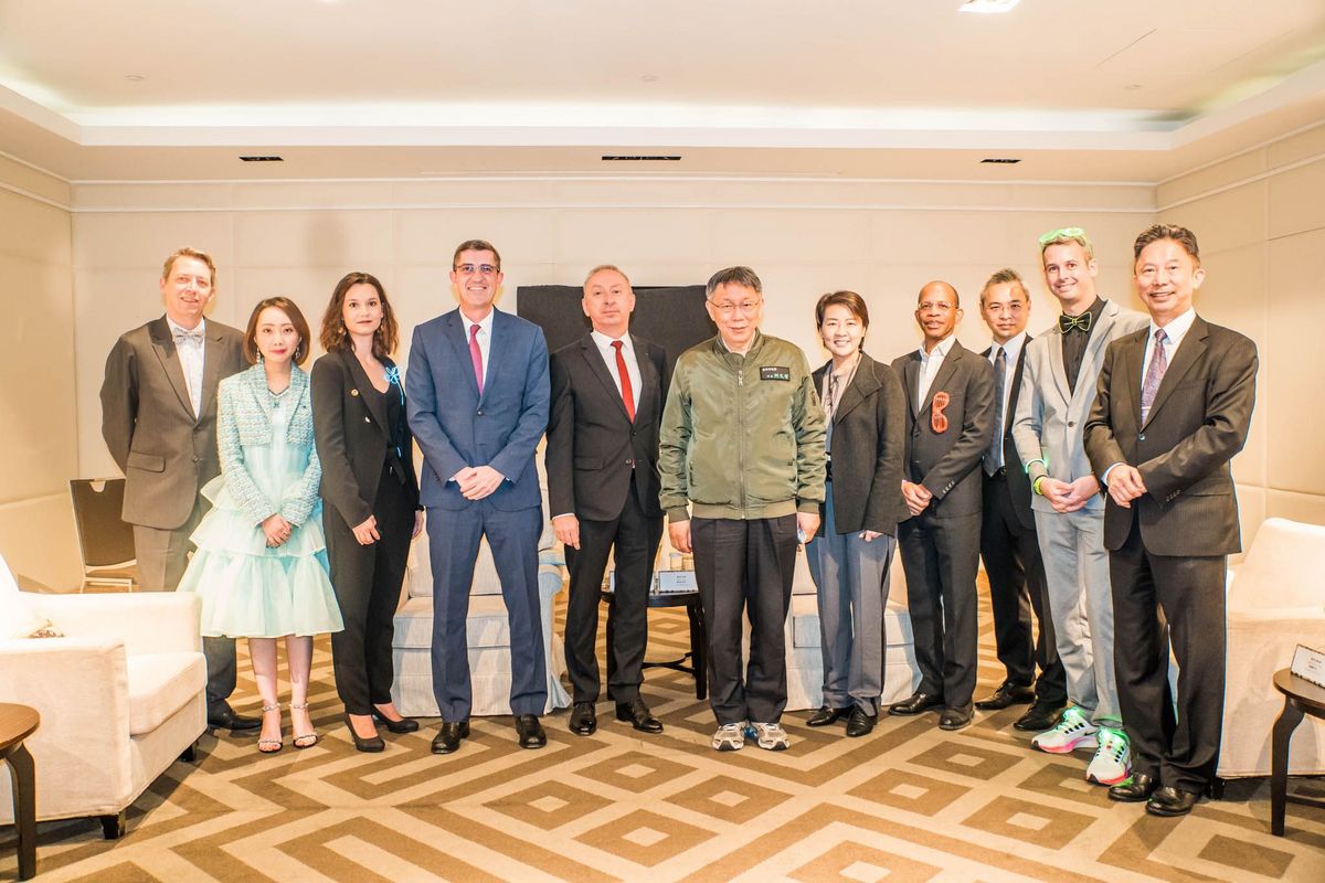 We had the honor to welcome the director of French Office in Taipei, Mr. Jean-Francois CASABONNE-MASONNAVE; head of economic department of French Office in Taipei, Mr. Alain BERDER; the director of Business France, Mr. Francois COTIER; Taoyuan City mayor Mr. Wen-Tsan CHENG and Taipei Deputy Mayor Ms. Shan-Shan HUANG to join the gala dinner! Before the event, Taipei City Mayor Mr. Wen-Je KO also had a private meeting with our board members and sponsors to discuss the policy highlights of Taipei City.