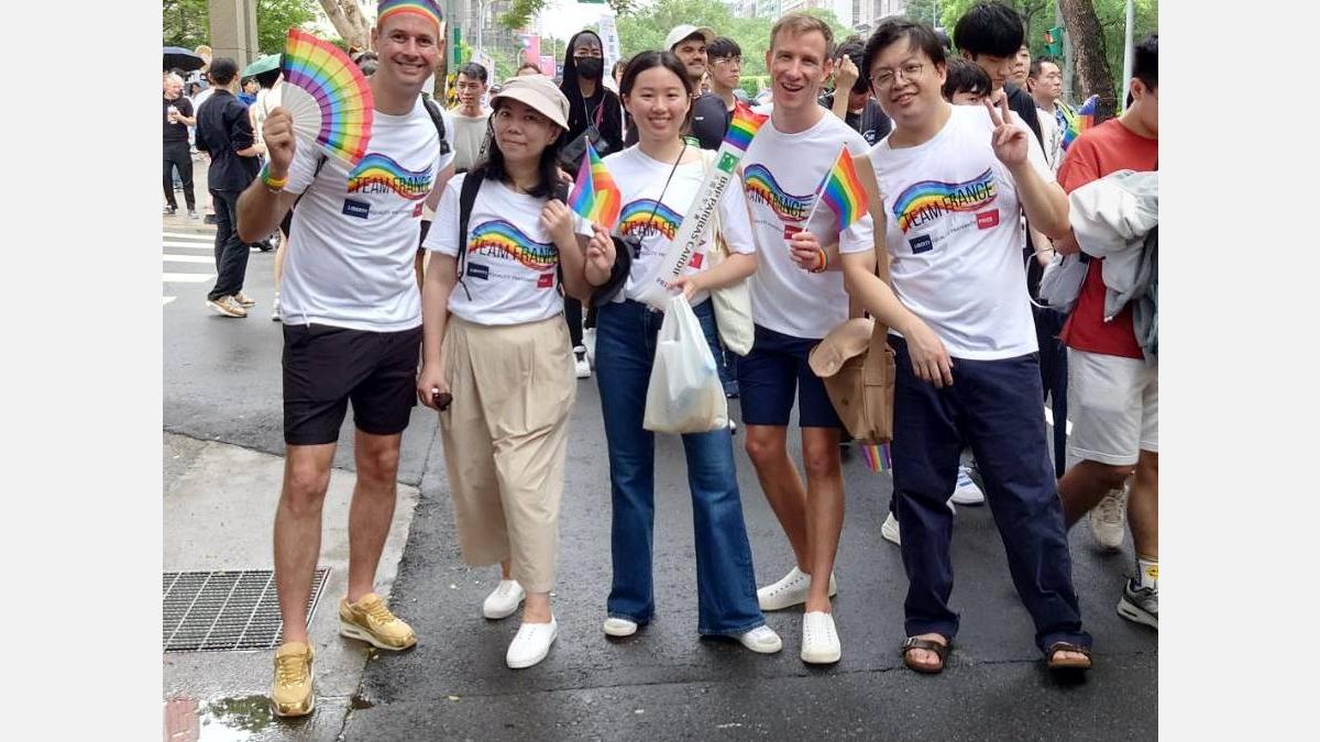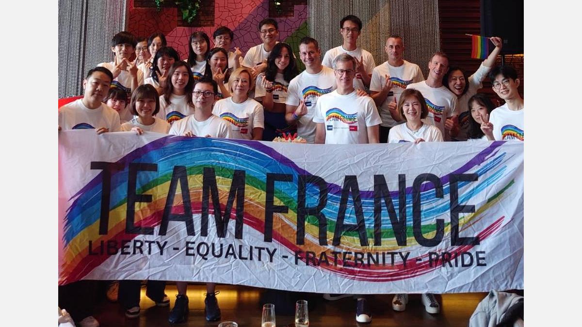 This year, Team France made a remarkable impact. With around 150 participants proudly marching under one name and one T-shirt, the French community in Taiwan came together in a strong show of support for equality and inclusion. The group brought together representatives from across the French ecosystem; businesses, schools, institutions, and families. All united by shared values and a commitment to diversity.