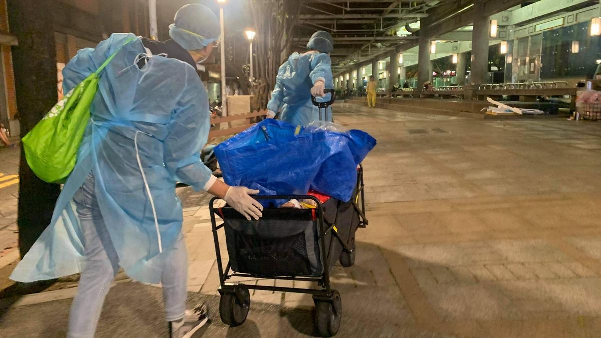 許多供餐機構因為避免群聚都停止供餐了,公共區域的飲水機關閉,原本無家者賴以為生的臨時工機會像是舉牌、洗碗雜工等等也消失了,我們甚至發現有人在三級之後開始翻找垃圾桶裡的食物維生,街頭上的無家者正面臨著一場生存危機。