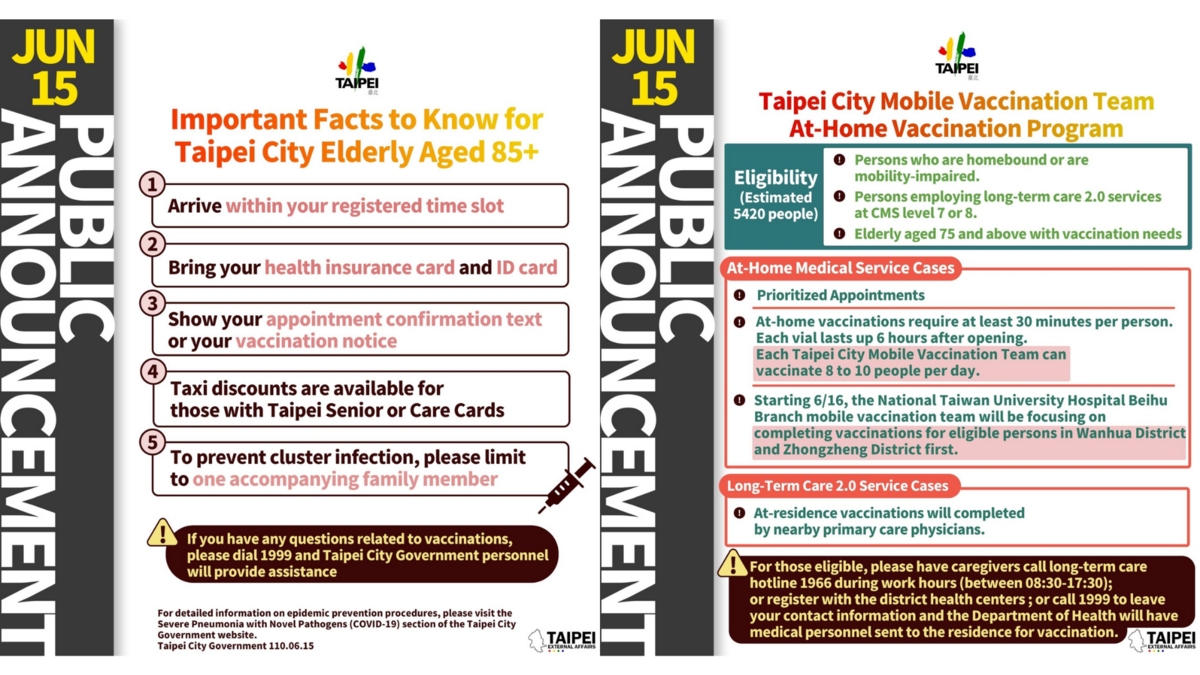 Taiwan Centers for Disease Control Taipei City Government Ministry of Foreign Affairs