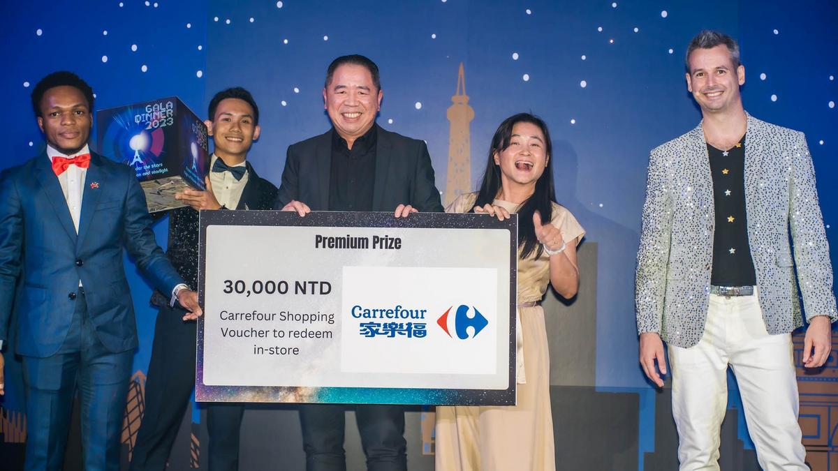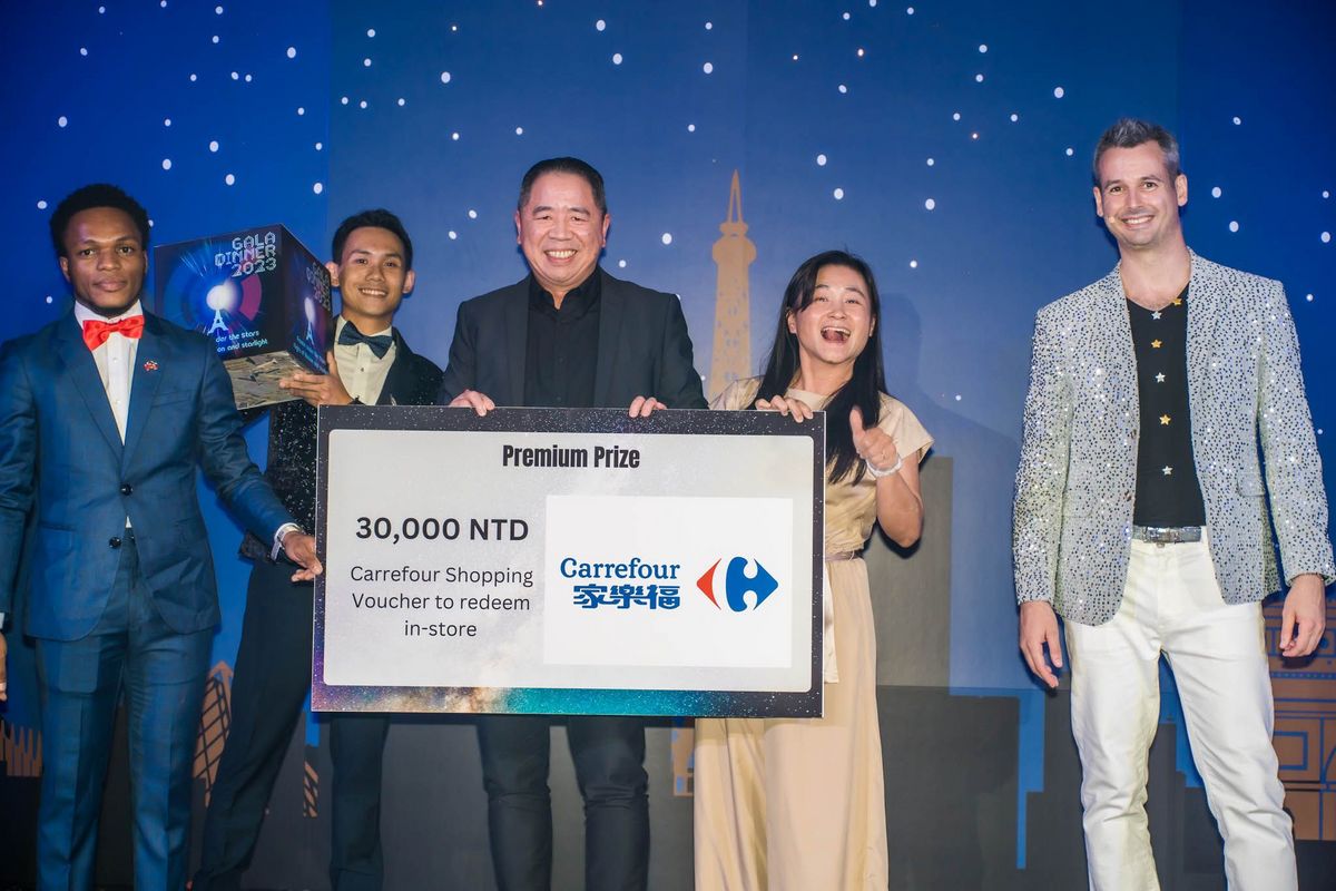 Premium Lucky Draws were drawn on stage including: A jade pendent and bracelets from MIRROR, 2 return flights between Taipei and Paris from EVA AIR, A designer dress from GIOIA PAN, One night stay for 2 at the Grand Hyatt Taipei, Micro BMW city scooter from Ta-Tung BMW, and 3 E-vouchers redeemable at over 50 brands in Taiwan by Edenred.