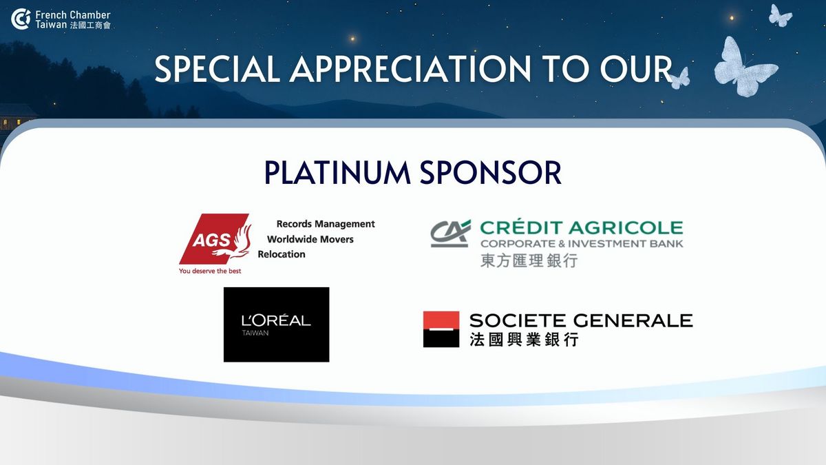 Our evening began with a toast and greeting from our VIPs, including the Director of the French Office in Taipei, Franck PARIS, Laurent POTIN, Chief Executive Officer, Taipei branch at Credit Agricole CIB, Ms Carrie LEE, Director of Communication and Govt affair at Veolia Taiwan and the General Manager at French Chamber, Stephane PEDEN.