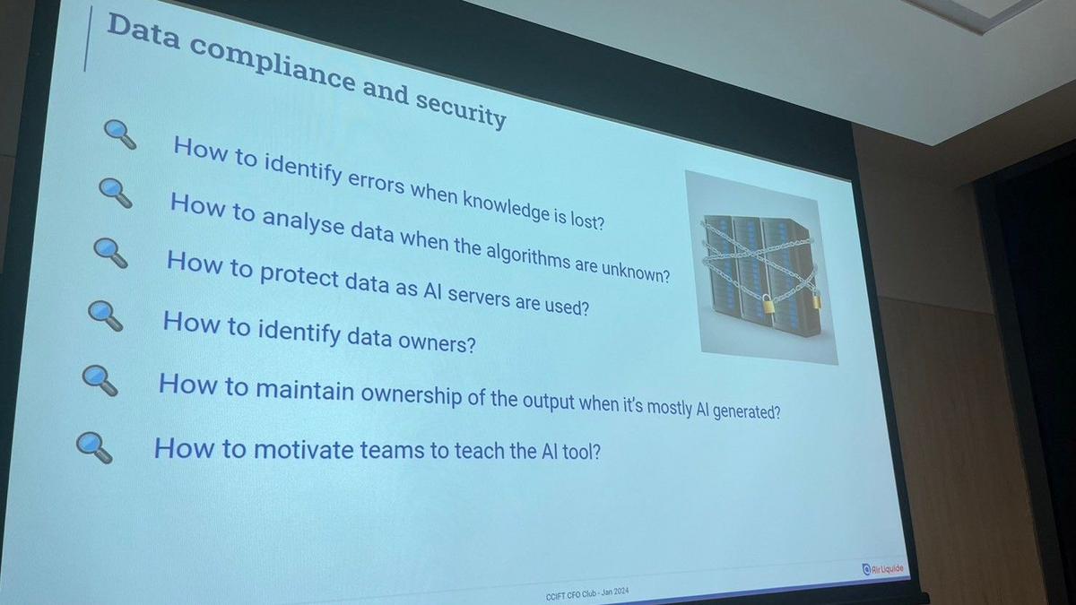 The event commenced with a roundtable presentation featuring a brief introduction to the subject by Eric Sichere from Air Liquide, focusing on the digitalization of finances in Taiwan, with a particular emphasis on the integration of AI.