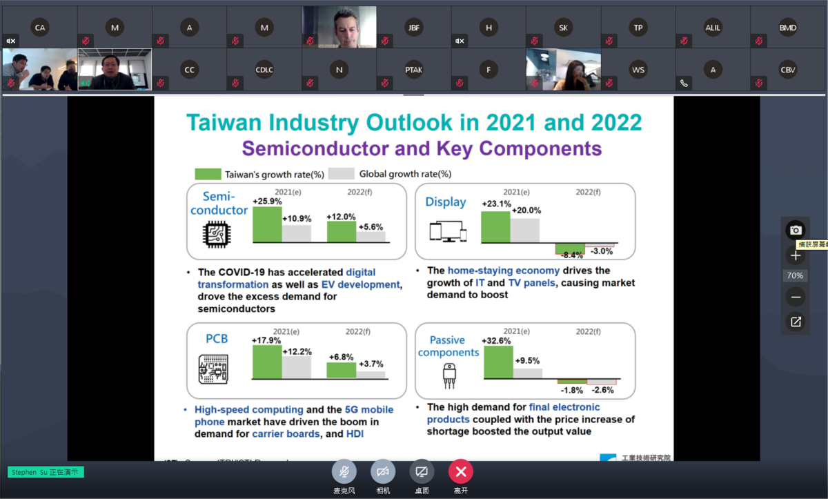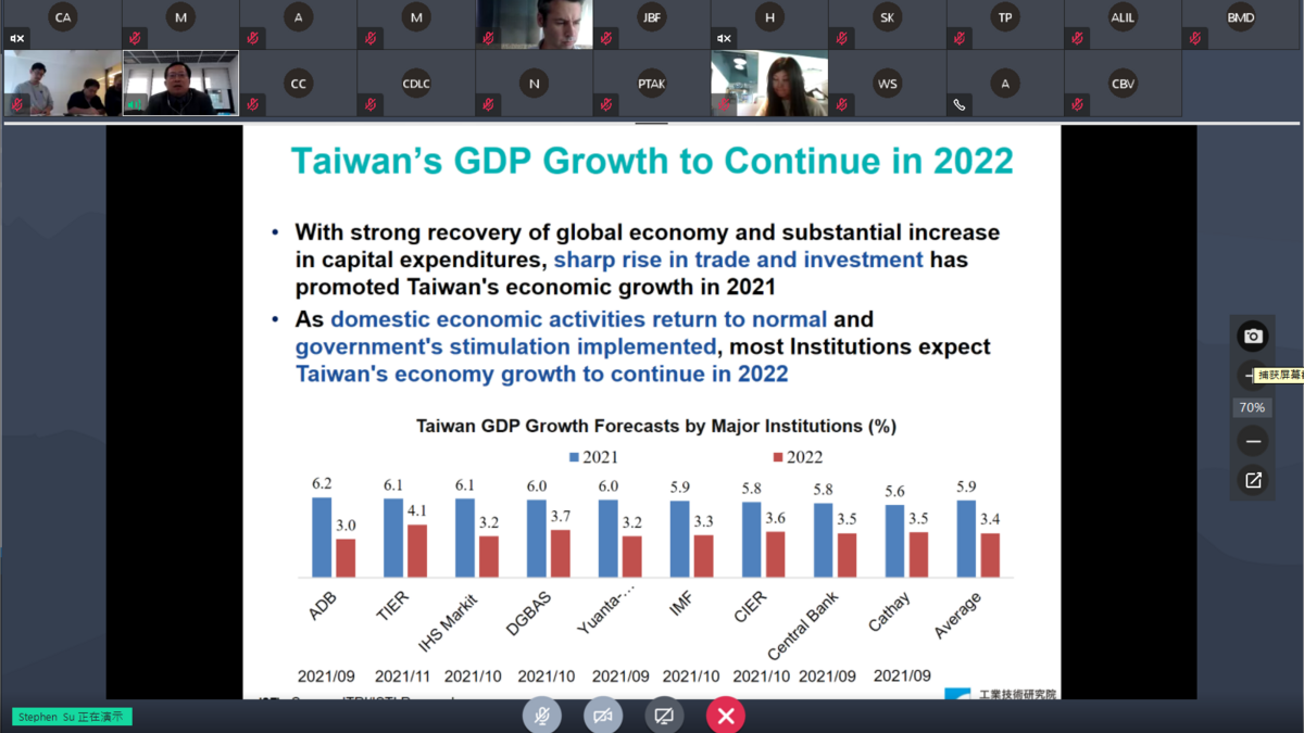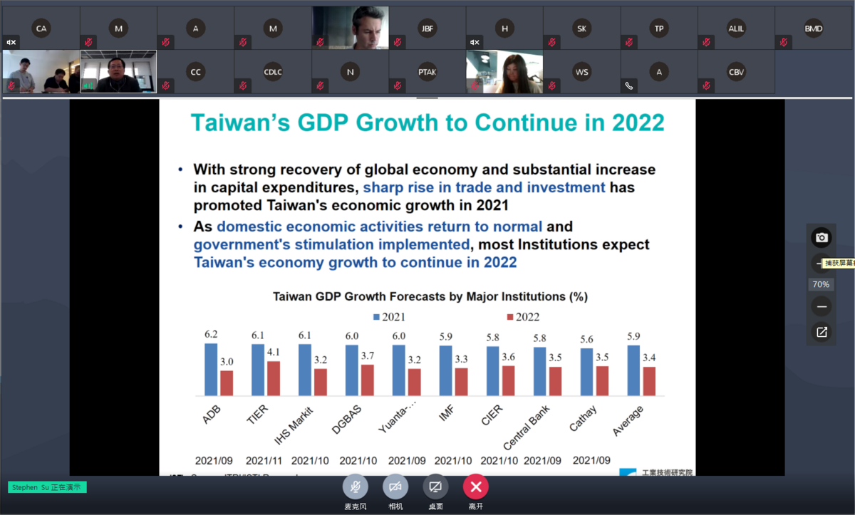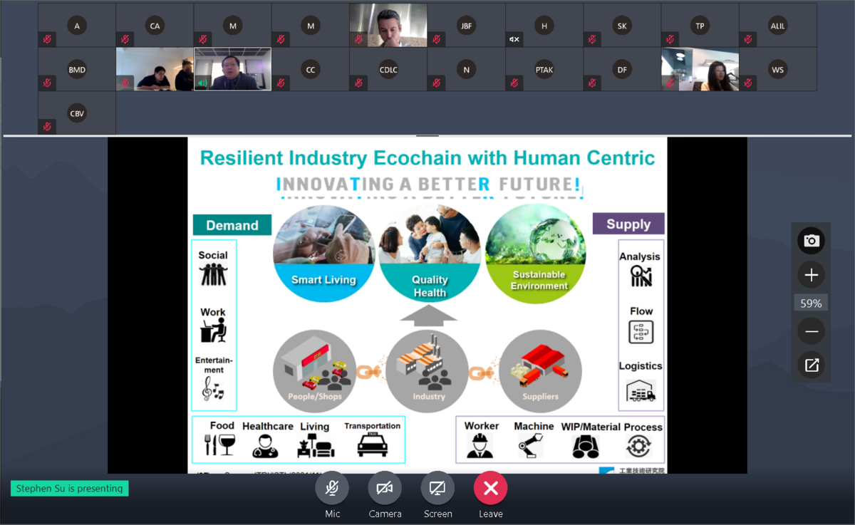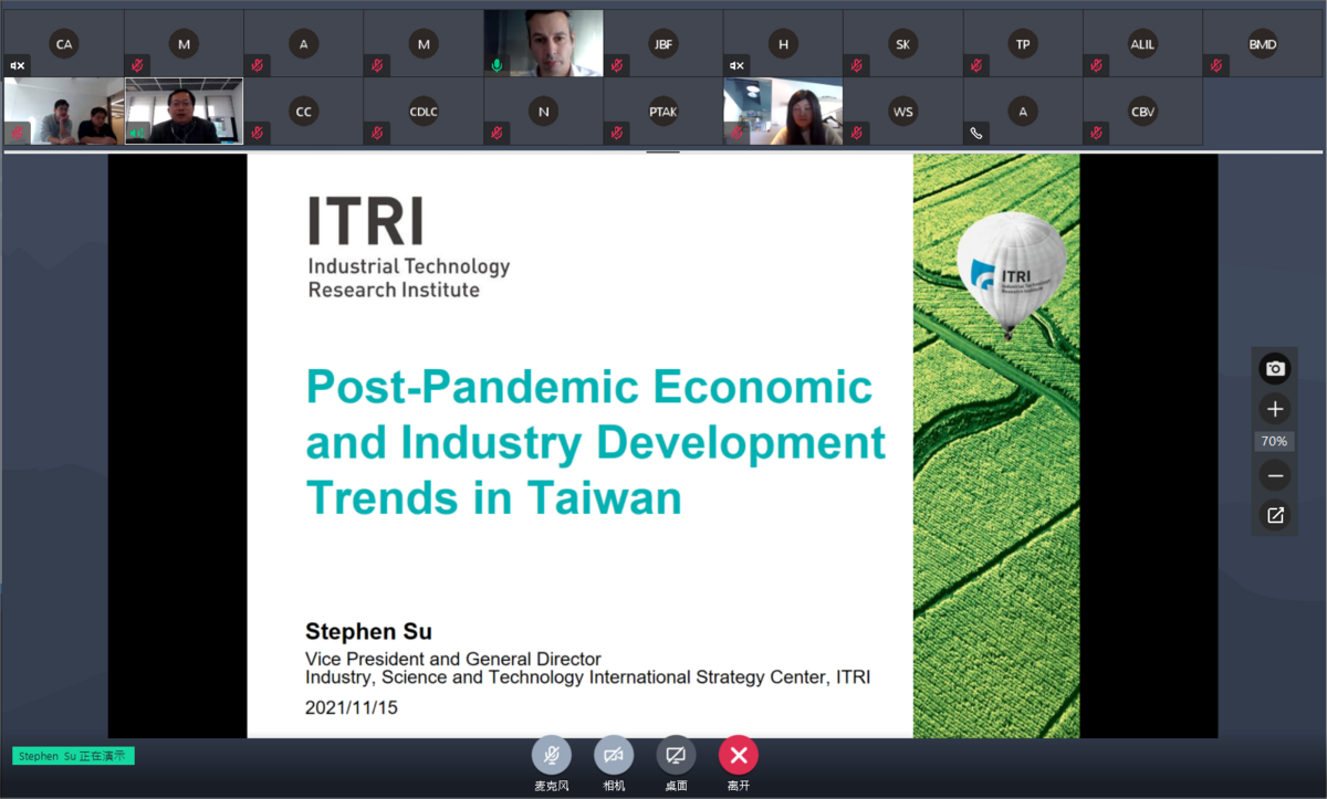 On November 15th, we were pleased to invite Mr. Stephen Su, the VP & general director of ISTI of Industrial Technology Research Institute, Taiwan (ITRI) to have a presentation about Post-Pandemic Economic and Industry Development Trends in Taiwan.