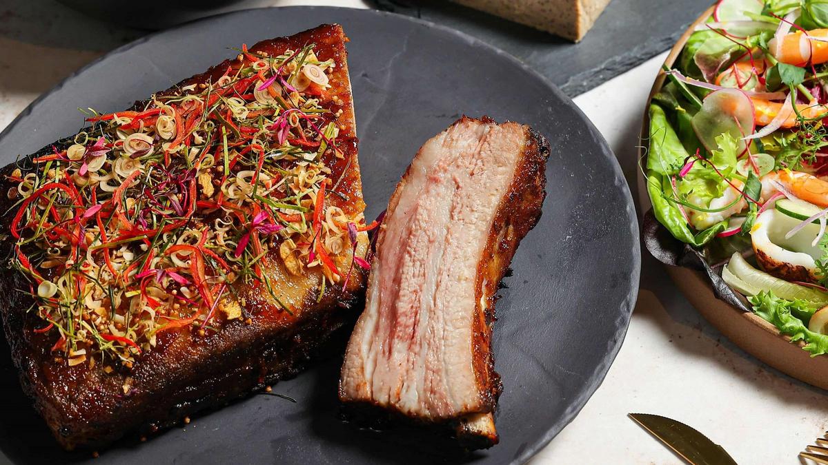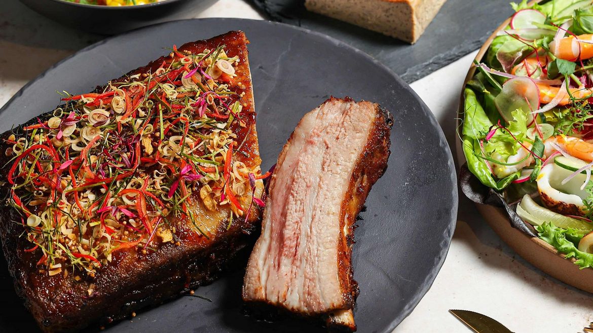 The “Regent x Richie Lin Celebrity Chef Sharing Set” includes four unique dishes. Starting from the refreshing “Shrimp and Grilled Baby Squid Salad with Green Chili Dressing”, a classic Thai appetizer to spice up your palettes; the “Corn Veloute with Roast Scallop and Bayonne Ham and Brioche” is a perfect combination of sweet oven roasted scallops and silky corn soup, topped with savory French Bayonne ham, complimented by freshly baked sourdough brioche. The main dish is the sweet and sour “Slow Cooked Baby Back Ribs with Tamarind Glaze”, a unique imitation of barbeque ribs presented through the oriental aroma and taste of tamarind. The dessert is the “Thai Milk Tea with White Chocolate Cheesecake”, the aroma of the
