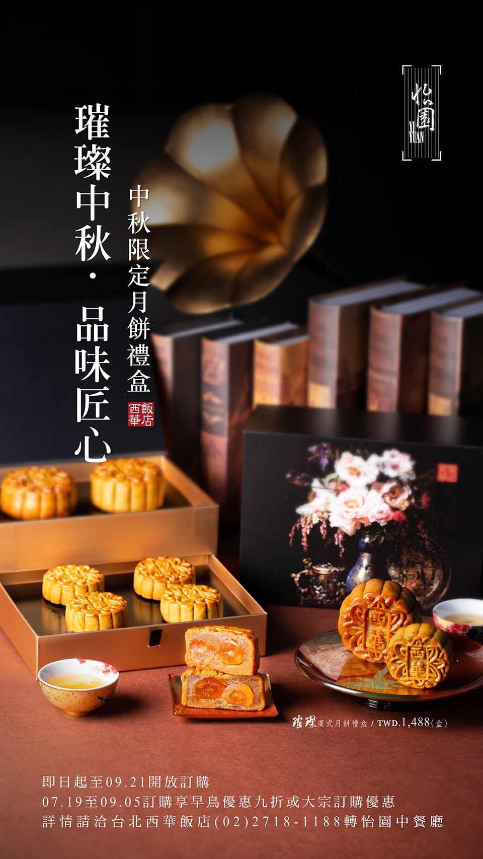 今年(2021),臺北西華飯店除了推出每年熱賣銷售經典璀璨月餅禮盒外,更全新推出備受矚目的西華匠心月餅禮盒供您選擇!!! 禮盒包裝也推出兩款不同風格,以名畫 永無止盡的璀璨 及 小糕餅師傅 佐設計風格,呈現在您的面前,更將優雅經典風格透過西華的溫暖服務送到賓客手中。