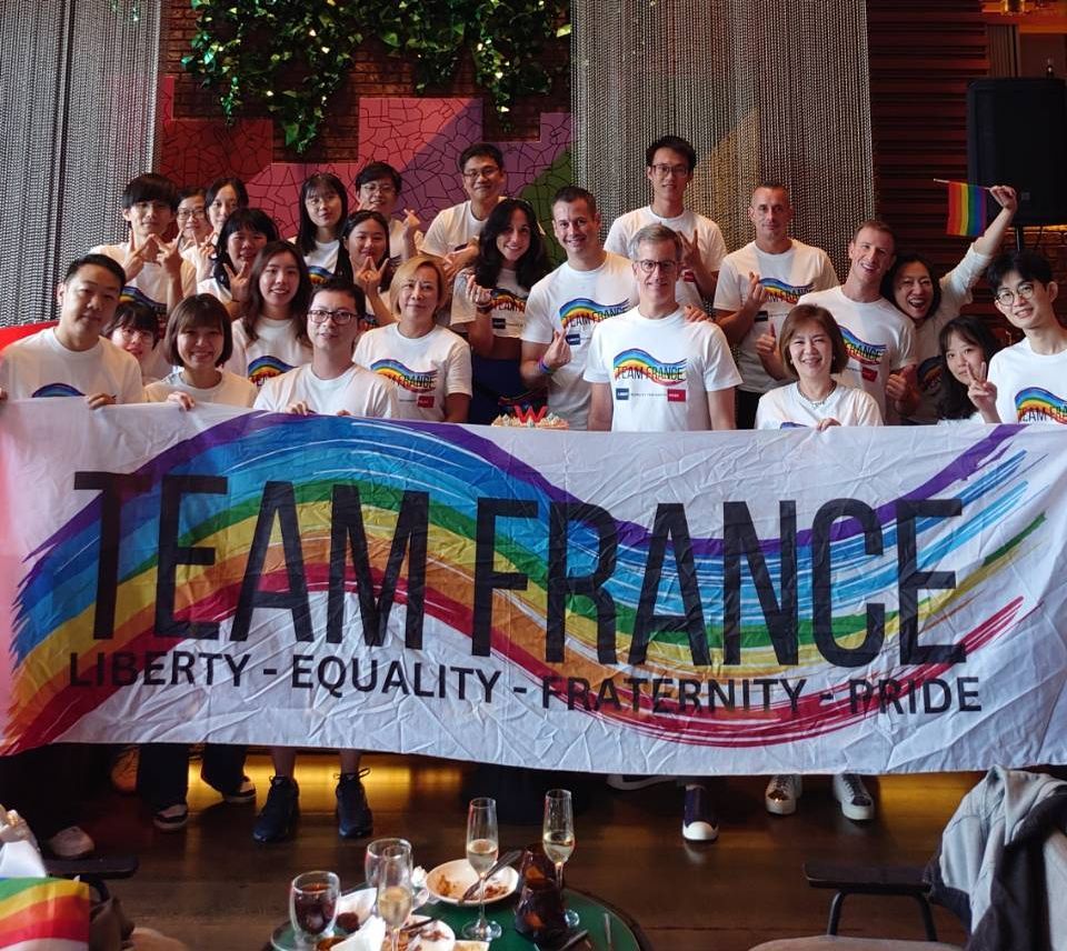 This year, Team France made a remarkable impact. With around 150 participants proudly marching under one name and one T-shirt, the French community in Taiwan came together in a strong show of support for equality and inclusion. The group brought together representatives from across the French ecosystem; businesses, schools, institutions, and families. All united by shared values and a commitment to diversity.