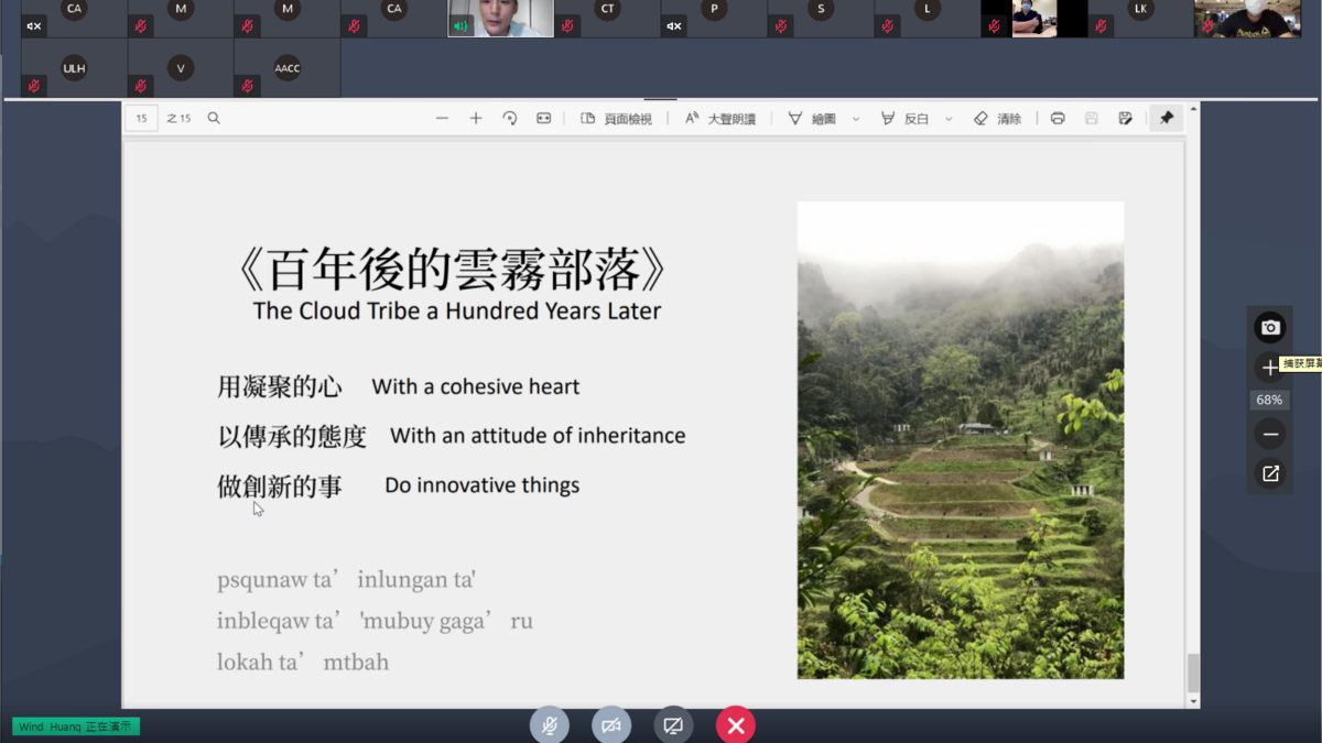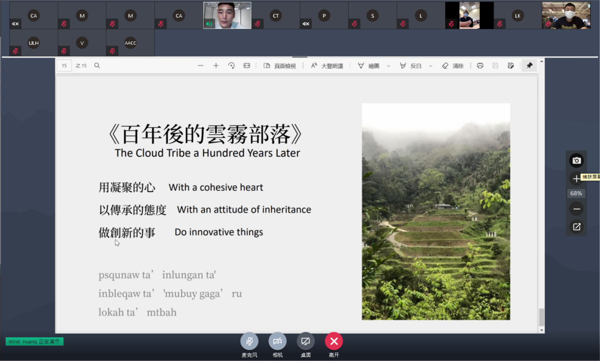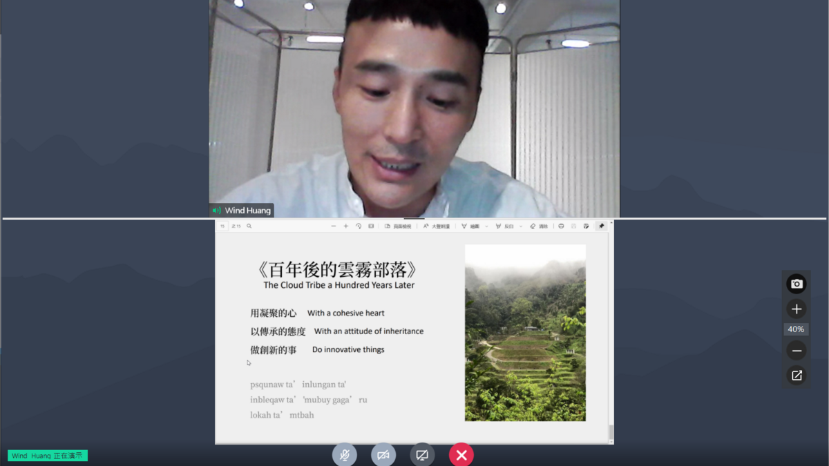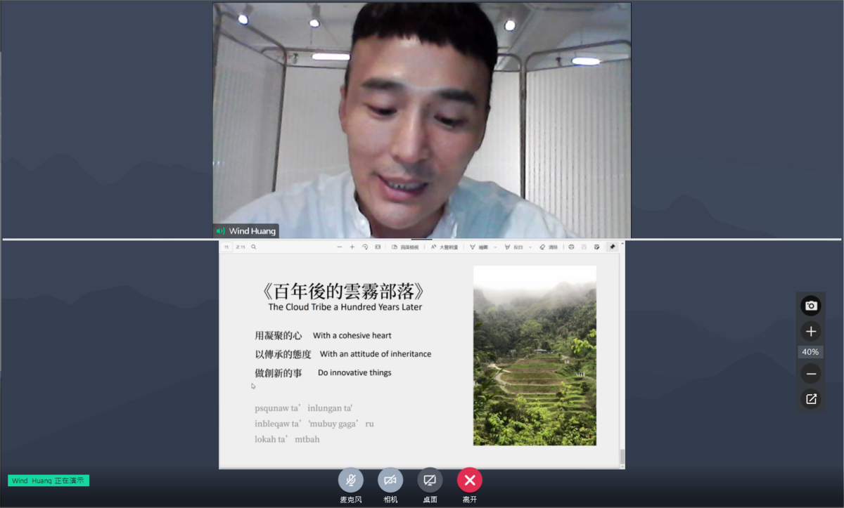 During the webinar, he shared his motives and actions about protecting the environment and aboriginal culture in Taiwan. To find a plant representing their tribe, he chose the tassel flower, a native plant of Taiwan. When the trees blossom, everyone will be able to find the flowers all the way to the ridgeline of Lala Mountain.