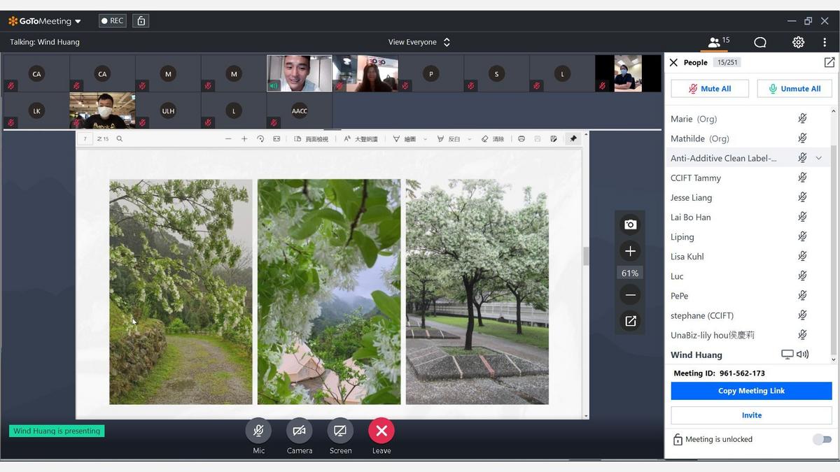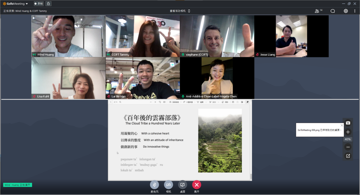 In the end of the webinar, Wind would like to especially thank Pascal Thien-Ah-Koon of Tak Associes Taiwan, Joël Cicéron of Ostendo Projects, Gregoire de Boisse of Le Sommelier, Cindy Yeh of Pierre Fabre, Olivier Parrot of Olivier Traduction, Terence Ong of Pernod Ricard, Camille Tang of Le P’tit Cru, Faye Angevine of Baiwin for their kind financial support to One Tree-One Mountain for planting trees.