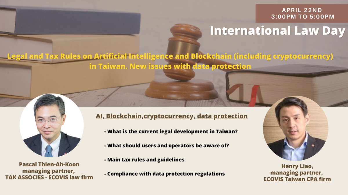 On April 22nd, international law day, we are pleased to invite Pascal Thien-Ah-Koon, managing partner, TAK ASSOCIES - ECOVIS law firm and Henry Liao, managing partner, ECOVIS Taiwan CPA firm to make a presentation about a law-related topic.