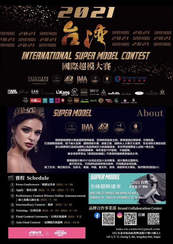 The International Super Model Contest was created by " INTERNATIONAL MODEL ASSOCIATION " and " ASIA FASHION ASSOCIATION ". The contest presents first- class super-models through competition exercises and image design. All three brands IP:INTERNATIONAL SUPER MODEL CONTEST, FASHION CHILDREN CONTEST, MRS INTERNATIONAL PAGEANT begin to bloom. Efforts will be made to build the beautiful event as an international brand, occupying a place in the world super model stage. The contest elects champion model and top ten models every year. Known as the "cradle of supermodels" by the industry, it represents the highest level of model qualification competition. INTERNATIONAL SUPER MODEL CONTEST 2021 starts now. Let the contest be truly international. Let models from different countries, with different cultures and skin colors come together to compete for the global championship. Taiwan officially joined 2021 International Super Model Contest. At present, China, Japan, Canada, the United States, Italy, Australia, Thailand and other countries have started. Super model’s beautiful battle flags are all over the world. Join an amazing career with fashion and youth together!